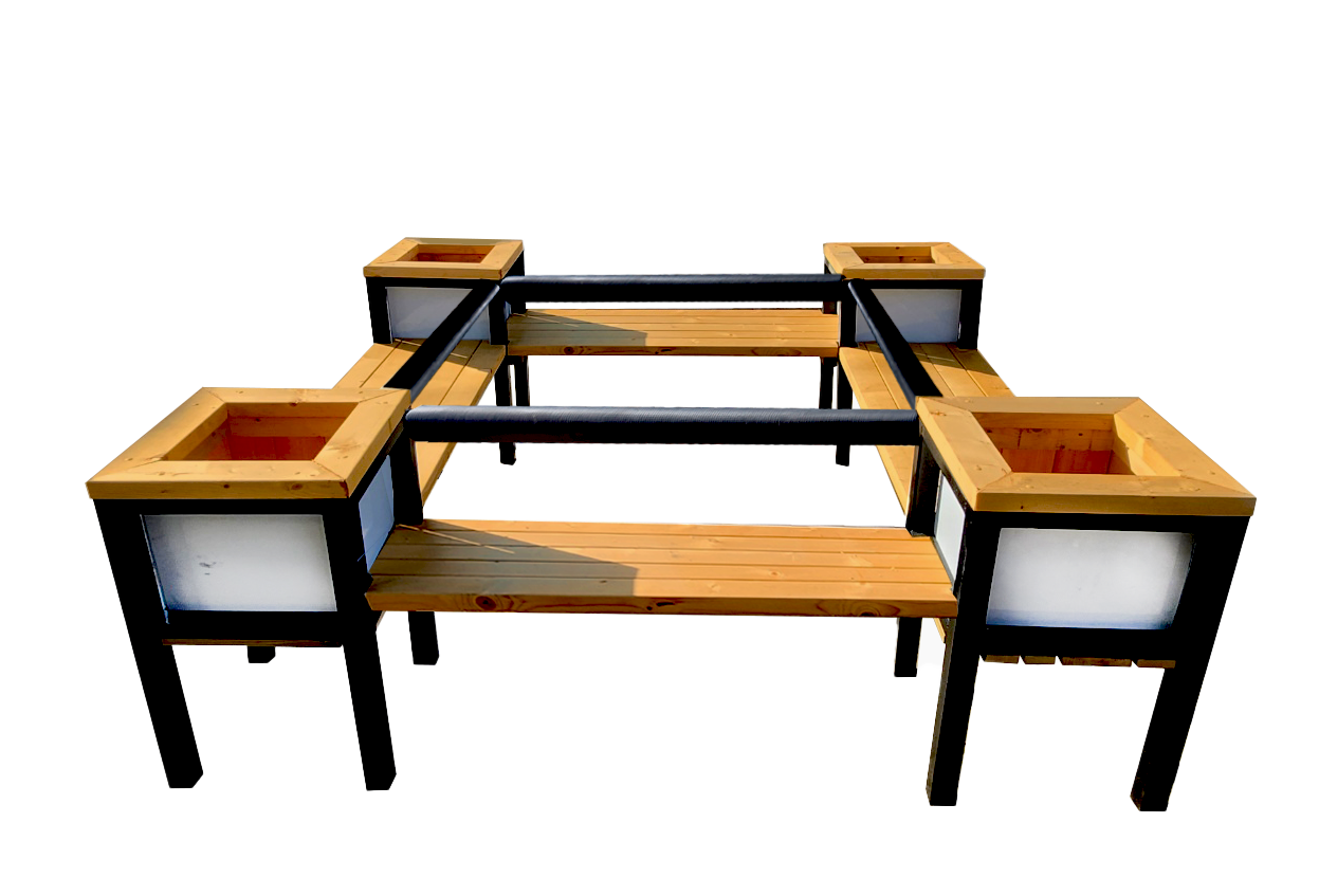 화분박스와 좌석을 마음대로 구성할 수있는 등받이 화분벤치 입니다.