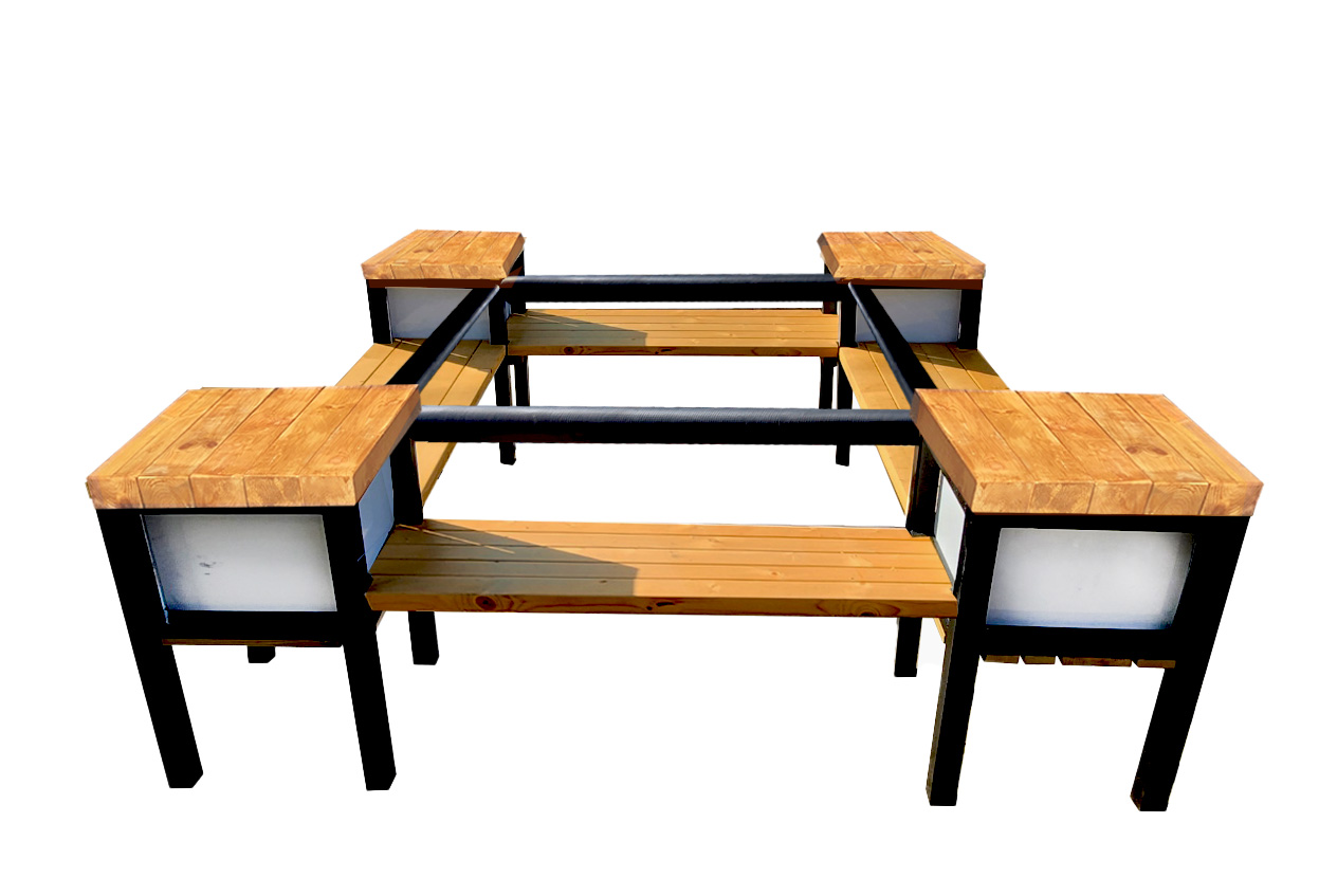 테이블박스와 좌석을 마음대로 구성할 수있는 등받이 화분벤치 입니다.