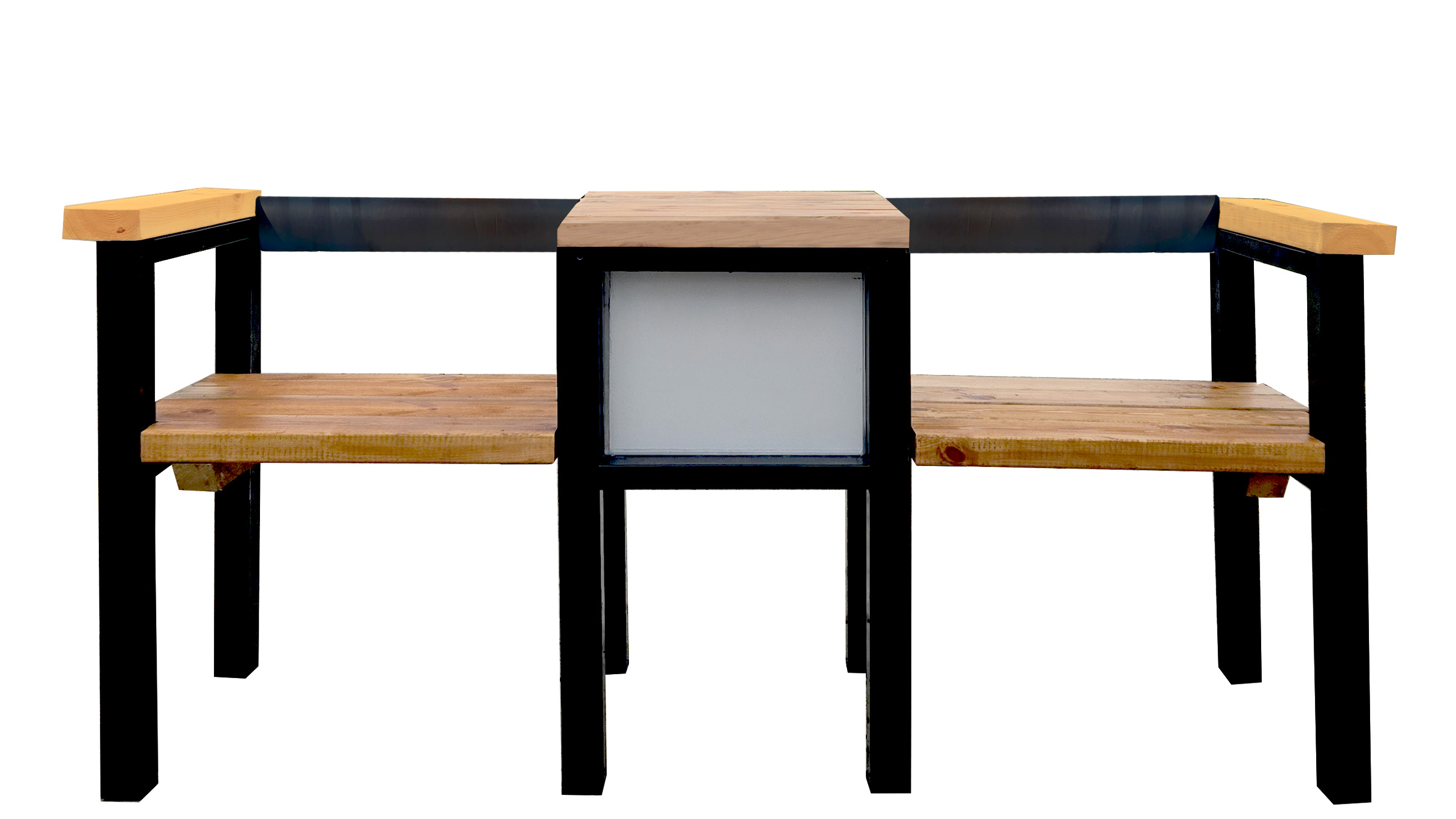 보호대등받이로 적당한 탄성감이 있고, 팔걸이와 중간 테이블이 있어 편안한 2인 등벤치입니다.