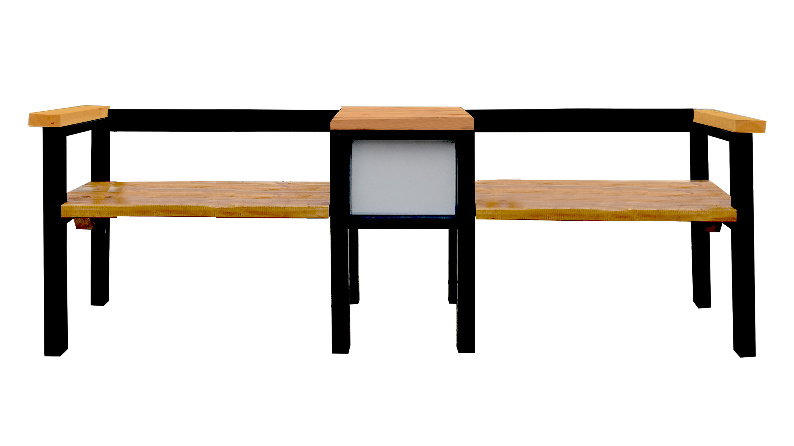 보호대등받이로 적당한 탄성감이 있고, 팔걸이와 중간 테이블이 있어 편안한 2인 등벤치입니다.